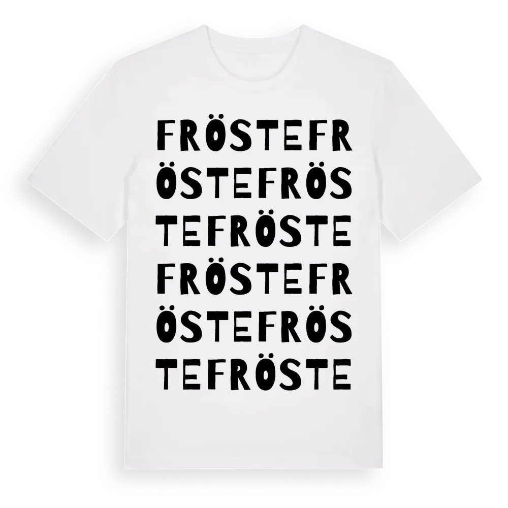 En ordlek byggd på Fröstes namn. Subtilt och klurig – ett motiv som bara de som verkligen känner platsen fullt ut förstår. Premium bomull, unisex – från byn Fröste i Gävleborgs län.