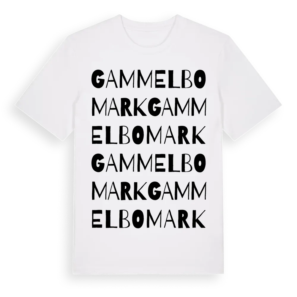 Gammelbomark ordlek t-shirt är inspirerad av Gammelbomark i Gävleborgs län, Sverige. Tröjan är designad för dig som har en speciell koppling till platsen – oavsett om du bor här, har rötterna här eller bara älskar Gammelbomark.