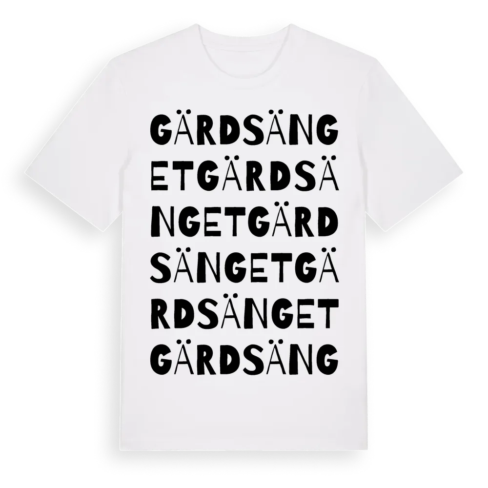 Gärdsänget ordlek t-shirt är inspirerad av Gärdsänget i Gävleborgs län, Sverige. Tröjan är designad för dig som har en speciell koppling till platsen – oavsett om du bor här, har rötterna här eller bara älskar Gärdsänget.