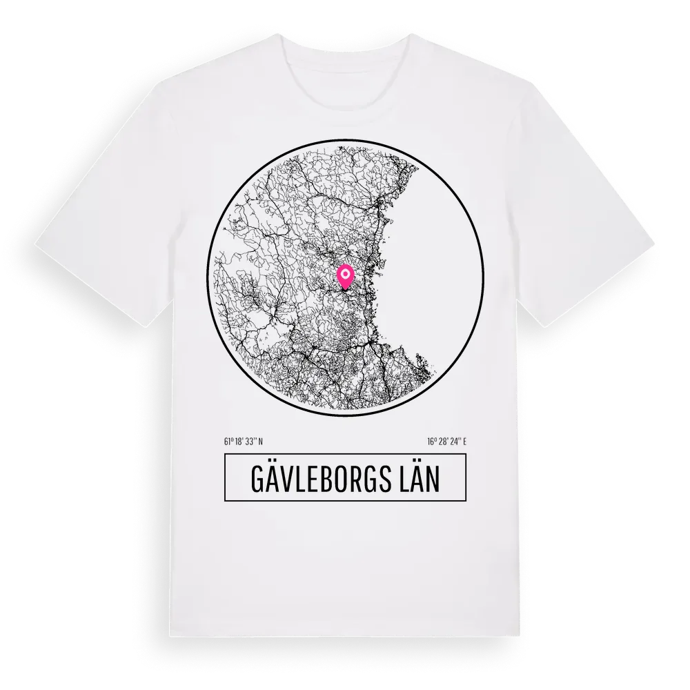 Gävleborgs Län t-shirt är inspirerad av Gävleborgs Län i Gävleborgs län, Sverige. Tröjan är designad för dig som har en speciell koppling till platsen – oavsett om du bor här, har rötterna här eller bara älskar Gävleborgs Län.