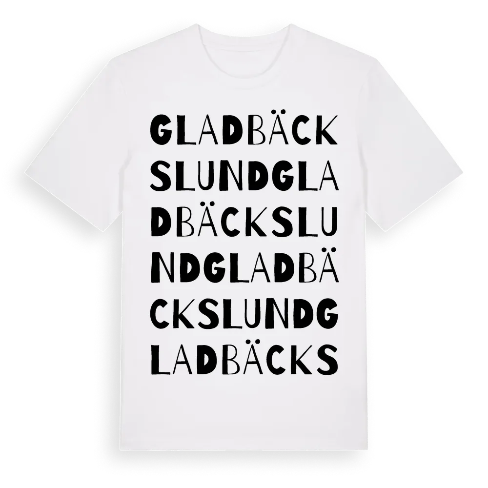 Gladbäckslund ordlek t-shirt är inspirerad av Gladbäckslund i Gävleborgs län, Sverige. Tröjan är designad för dig som har en speciell koppling till platsen – oavsett om du bor här, har rötterna här eller bara älskar Gladbäckslund.