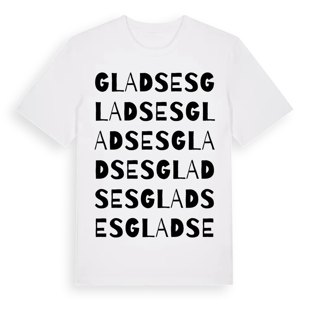 Gladses ordlek t-shirt är inspirerad av Gladses i Gävleborgs län, Sverige. Tröjan är designad för dig som har en speciell koppling till platsen – oavsett om du bor här, har rötterna här eller bara älskar Gladses.