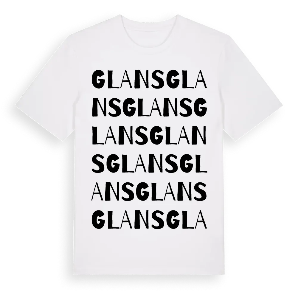 Glans ordlek t-shirt är inspirerad av Glans i Gävleborgs län, Sverige. Tröjan är designad för dig som har en speciell koppling till platsen – oavsett om du bor här, har rötterna här eller bara älskar Glans.