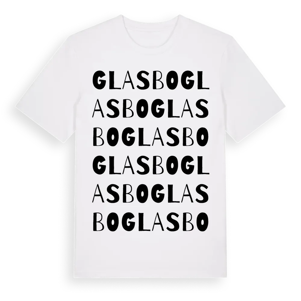 Glasbo ordlek t-shirt är inspirerad av Glasbo i Gävleborgs län, Sverige. Tröjan är designad för dig som har en speciell koppling till platsen – oavsett om du bor här, har rötterna här eller bara älskar Glasbo.
