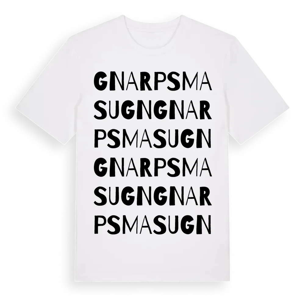 Gnarps Masugn ordlek t-shirt är inspirerad av Gnarps Masugn i Gävleborgs län, Sverige. Tröjan är designad för dig som har en speciell koppling till platsen – oavsett om du bor här, har rötterna här eller bara älskar Gnarps Masugn.