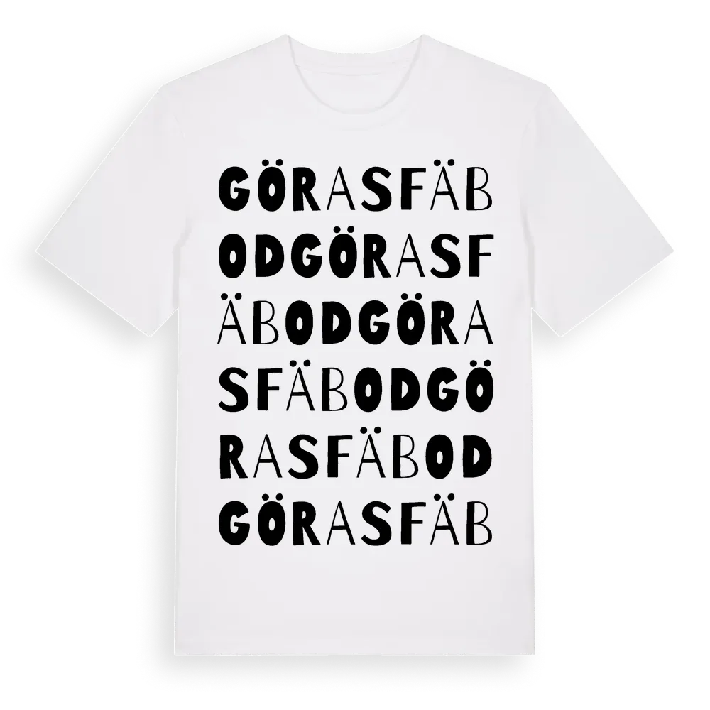 Göras Fäbod ordlek t-shirt är inspirerad av Göras Fäbod i Gävleborgs län, Sverige. Tröjan är designad för dig som har en speciell koppling till platsen – oavsett om du bor här, har rötterna här eller bara älskar Göras Fäbod.