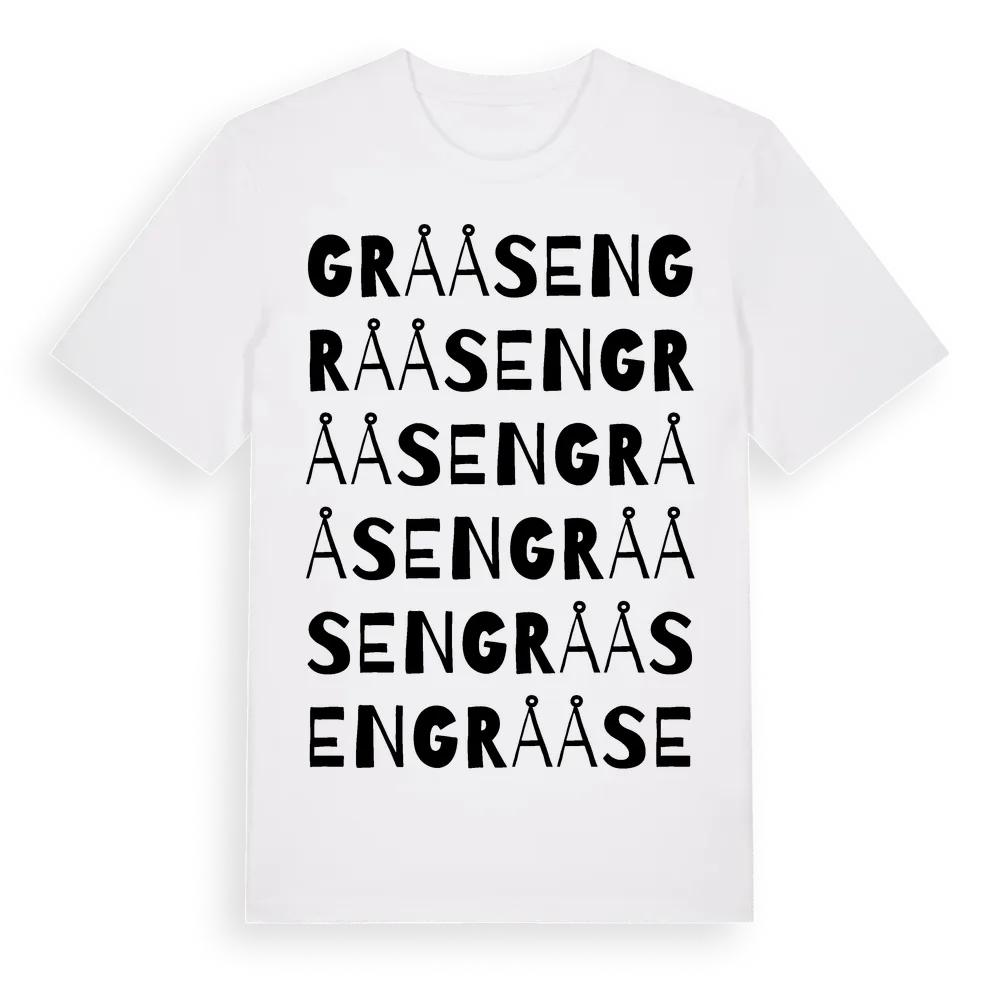 Grååsen ordlek t-shirt är inspirerad av byn Grååsen i Gävleborgs län, Sverige. Tröjan är designad för dig som har en speciell koppling till platsen – oavsett om du bor här, har rötterna här eller bara älskar Grååsen.