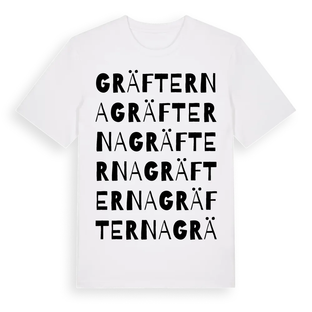 En ordlek byggd på Gräfternas namn. Subtilt och klurig – ett motiv som bara de som verkligen känner platsen fullt ut förstår. Premium bomull, unisex – från Gräfterna i Gävleborgs län.