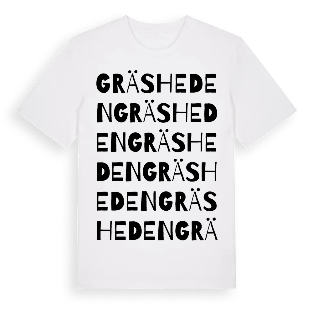 Gräsheden ordlek t-shirt är inspirerad av Gräsheden i Gävleborgs län, Sverige. Tröjan är designad för dig som har en speciell koppling till platsen – oavsett om du bor här, har rötterna här eller bara älskar Gräsheden.
