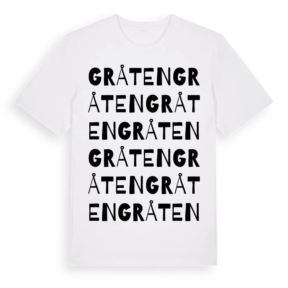 Gråten ordlek t-shirt är inspirerad av Gråten i Gävleborgs län, Sverige. Tröjan är designad för dig som har en speciell koppling till platsen – oavsett om du bor här, har rötterna här eller bara älskar Gråten.