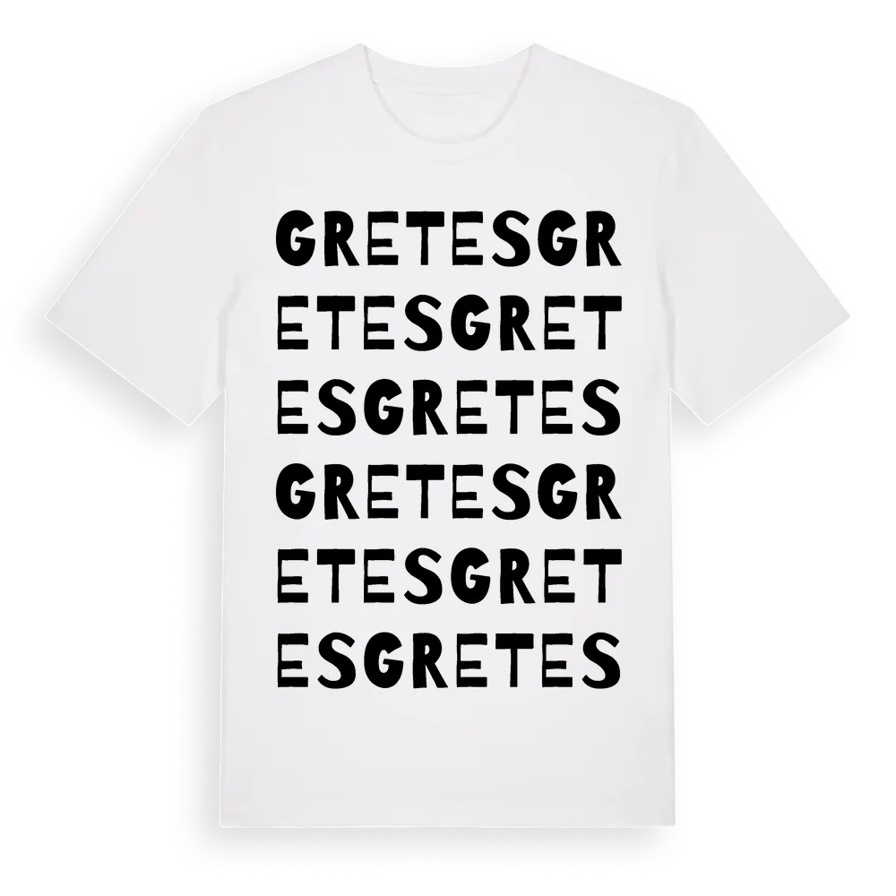 En ordlek byggd på Gretess namn. Subtilt och klurig – ett motiv som bara de som verkligen känner platsen fullt ut förstår. Premium bomull, unisex – från Gretes i Gävleborgs län.
