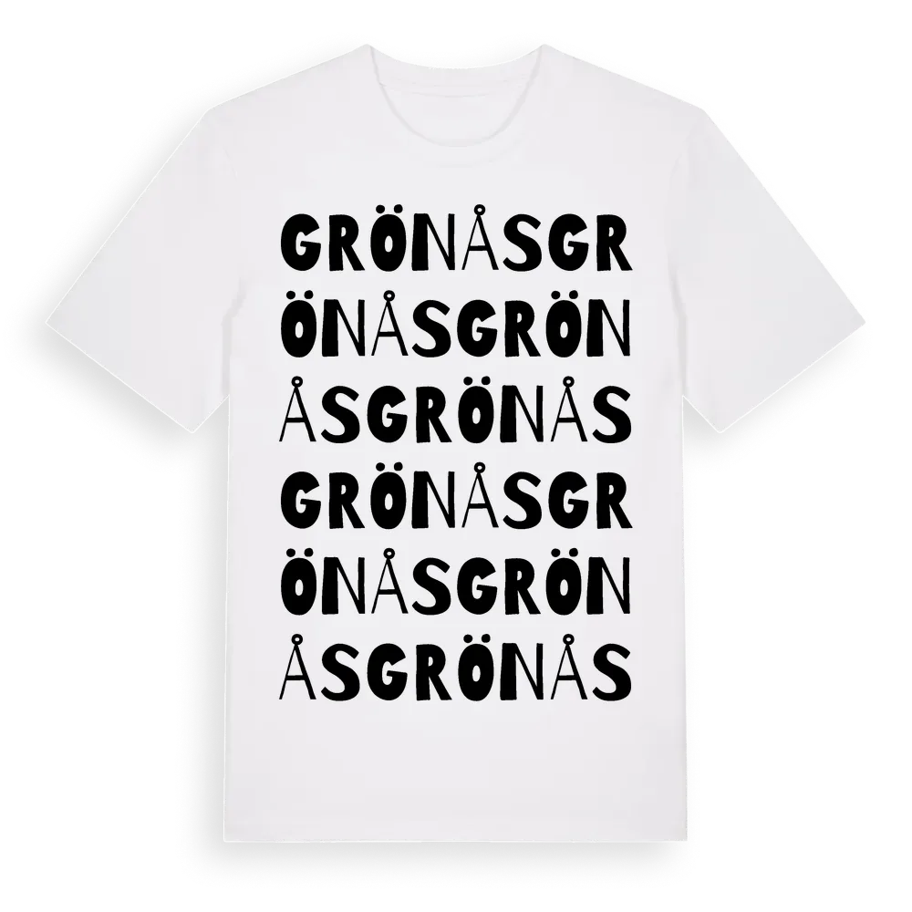 Grönås ordlek t-shirt är inspirerad av byn Grönås i Gävleborgs län, Sverige. Tröjan är designad för dig som har en speciell koppling till platsen – oavsett om du bor här, har rötterna här eller bara älskar Grönås.