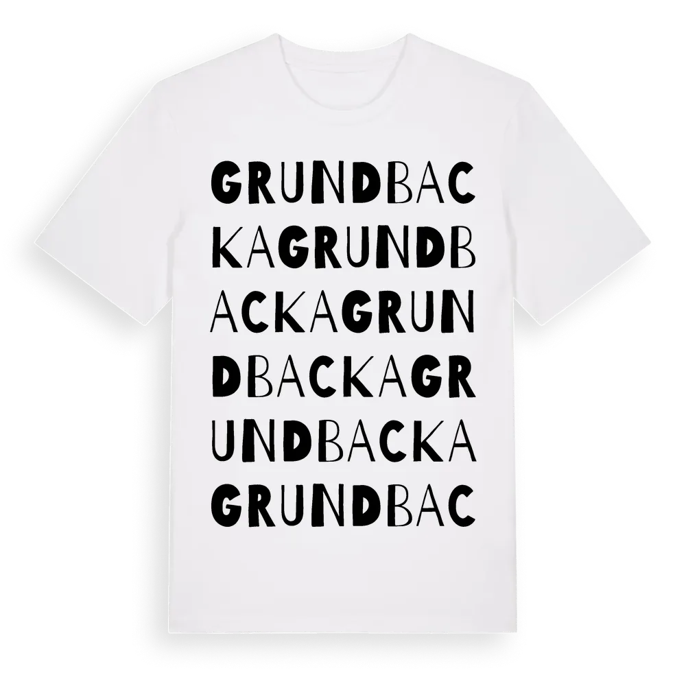 Grundbacka ordlek t-shirt är inspirerad av Grundbacka i Gävleborgs län, Sverige. Tröjan är designad för dig som har en speciell koppling till platsen – oavsett om du bor här, har rötterna här eller bara älskar Grundbacka.