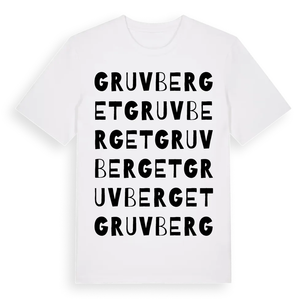 Gruvberget ordlek t-shirt är inspirerad av byn Gruvberget i Gävleborgs län, Sverige. Tröjan är designad för dig som har en speciell koppling till platsen – oavsett om du bor här, har rötterna här eller bara älskar Gruvberget.