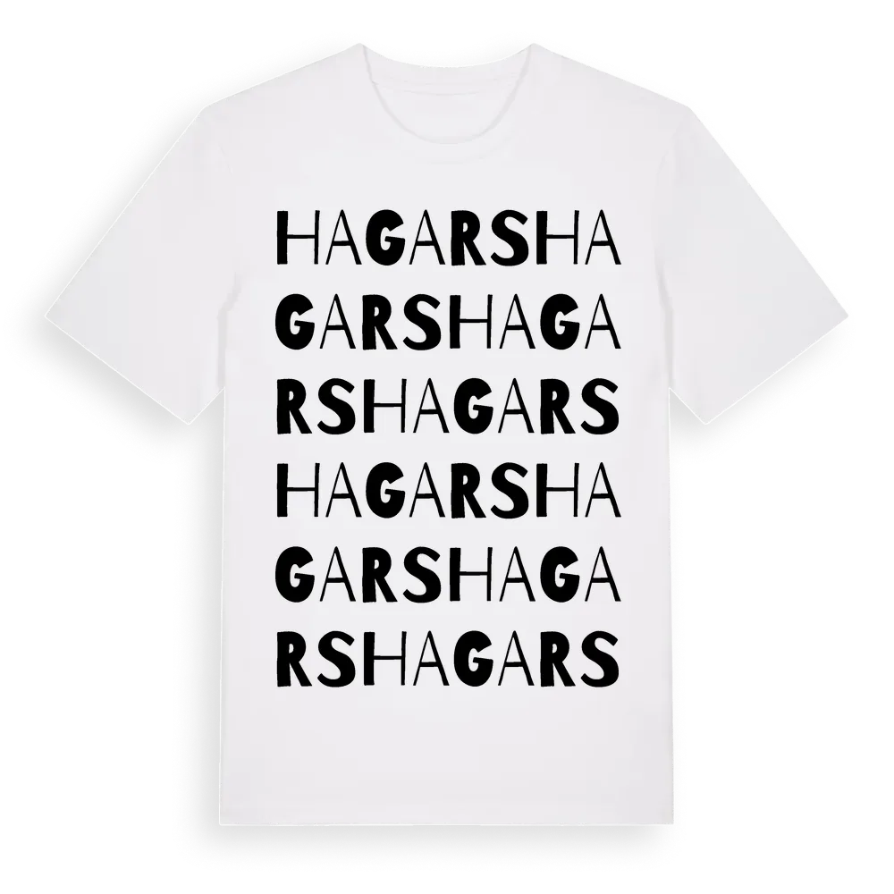 Hagars ordlek t-shirt är inspirerad av Hagars i Gävleborgs län, Sverige. Tröjan är designad för dig som har en speciell koppling till platsen – oavsett om du bor här, har rötterna här eller bara älskar Hagars.