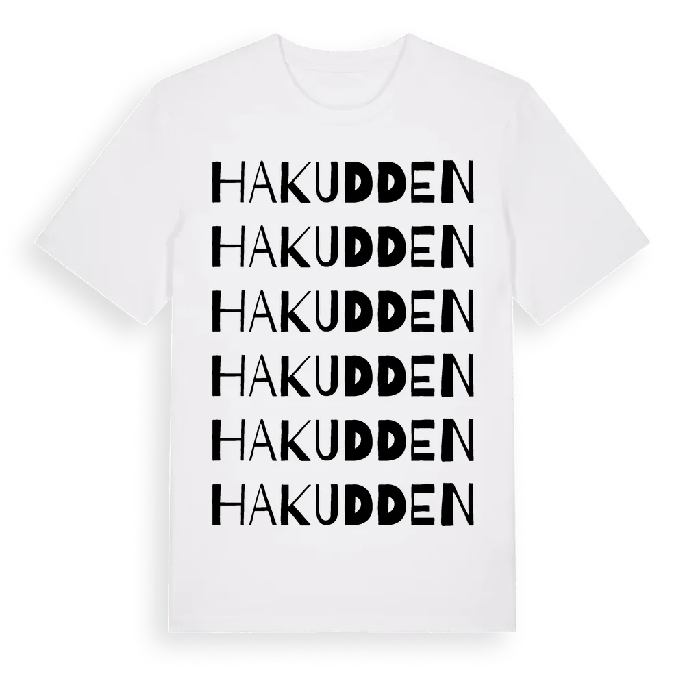 Hakudden ordlek t-shirt är inspirerad av stadsdelen Hakudden i Gävleborgs län, Sverige. Tröjan är designad för dig som har en speciell koppling till platsen – oavsett om du bor här, har rötterna här eller bara älskar Hakudden.
