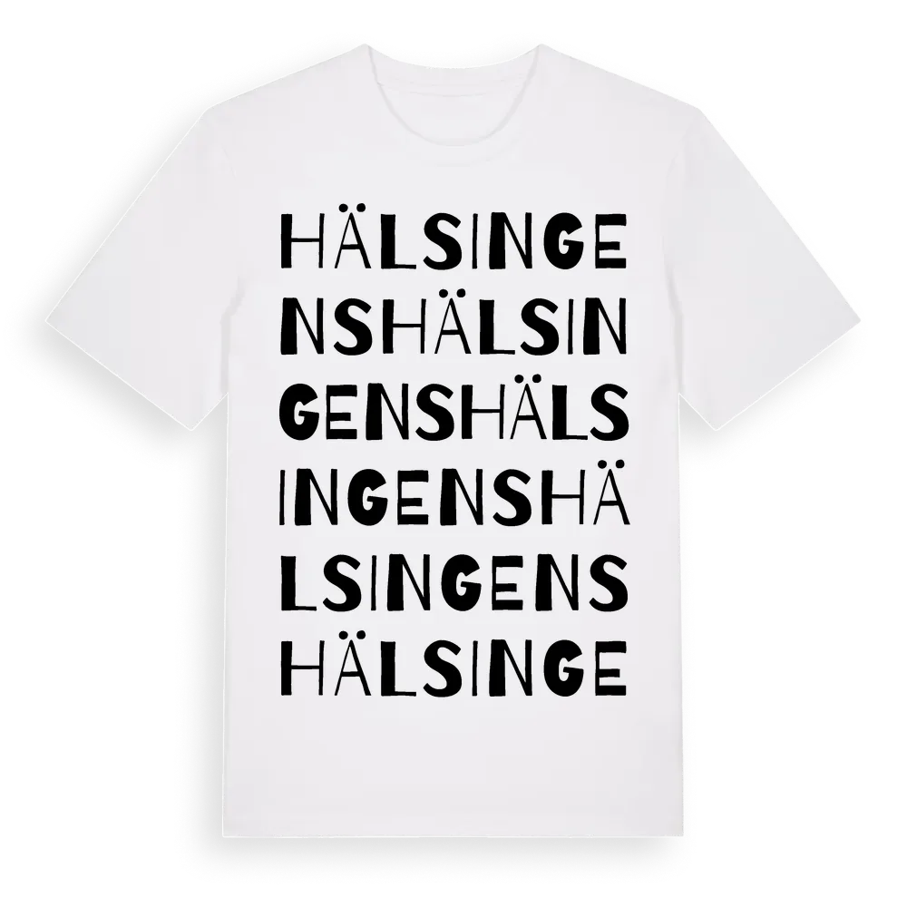 Hälsingens ordlek t-shirt är inspirerad av Hälsingens i Gävleborgs län, Sverige. Tröjan är designad för dig som har en speciell koppling till platsen – oavsett om du bor här, har rötterna här eller bara älskar Hälsingens.