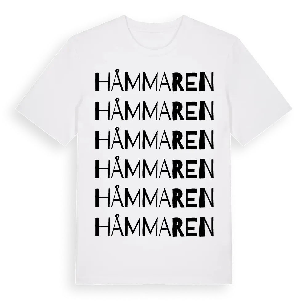 Håmmaren ordlek t-shirt är inspirerad av Håmmaren i Gävleborgs län, Sverige. Tröjan är designad för dig som har en speciell koppling till platsen – oavsett om du bor här, har rötterna här eller bara älskar Håmmaren.
