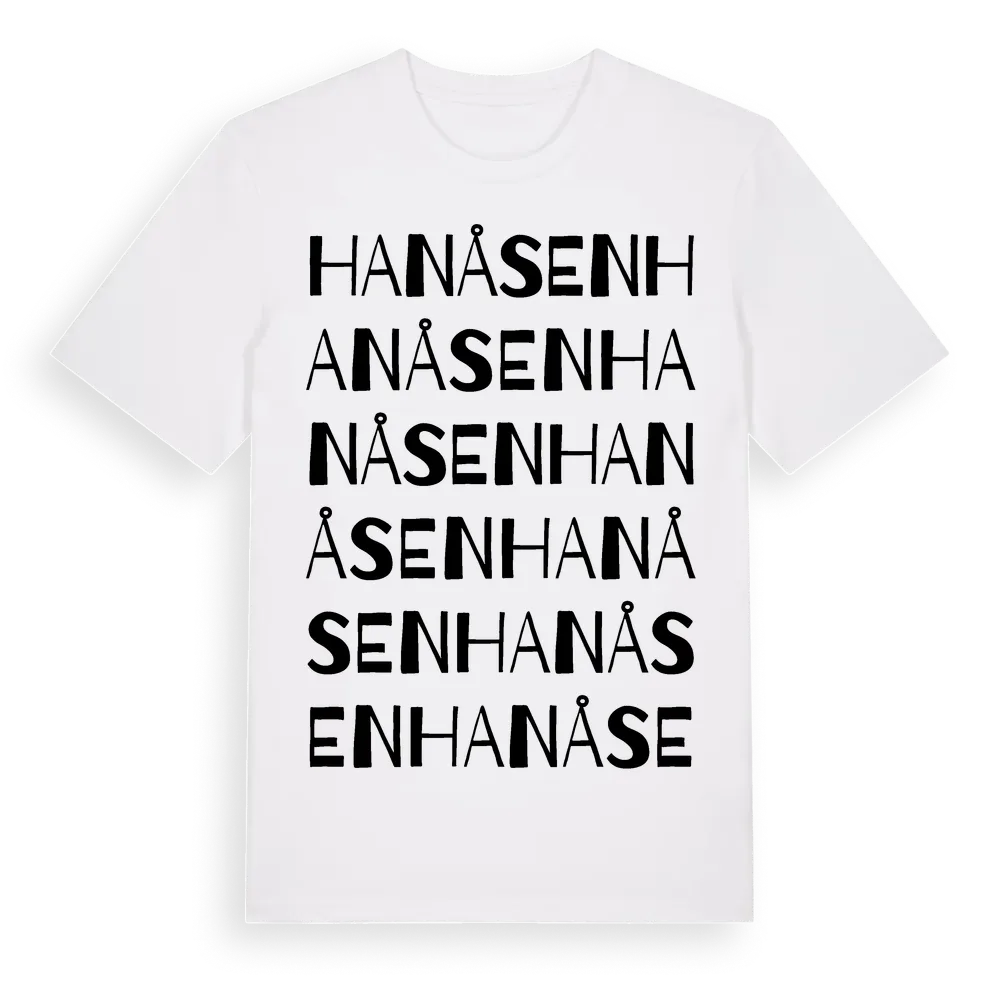 Hanåsen ordlek t-shirt är inspirerad av byn Hanåsen i Gävleborgs län, Sverige. Tröjan är designad för dig som har en speciell koppling till platsen – oavsett om du bor här, har rötterna här eller bara älskar Hanåsen.