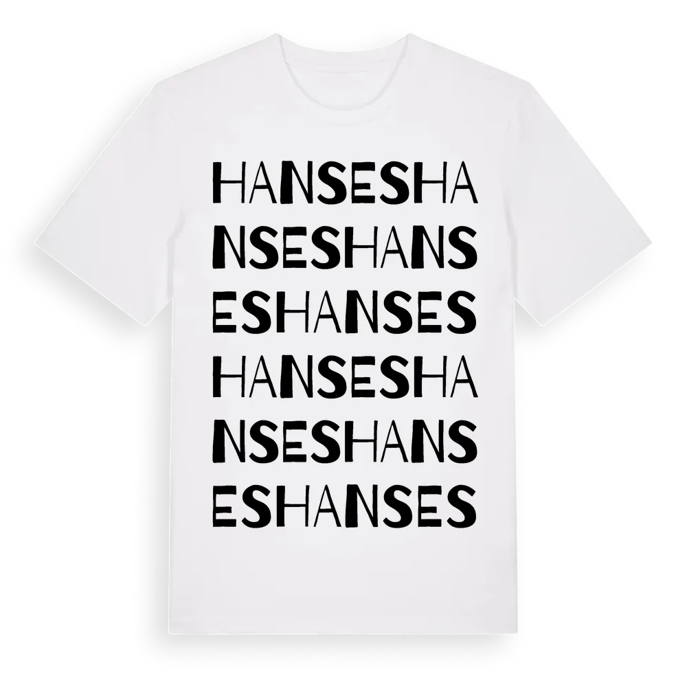 Hanses ordlek t-shirt är inspirerad av Hanses i Gävleborgs län, Sverige. Tröjan är designad för dig som har en speciell koppling till platsen – oavsett om du bor här, har rötterna här eller bara älskar Hanses.