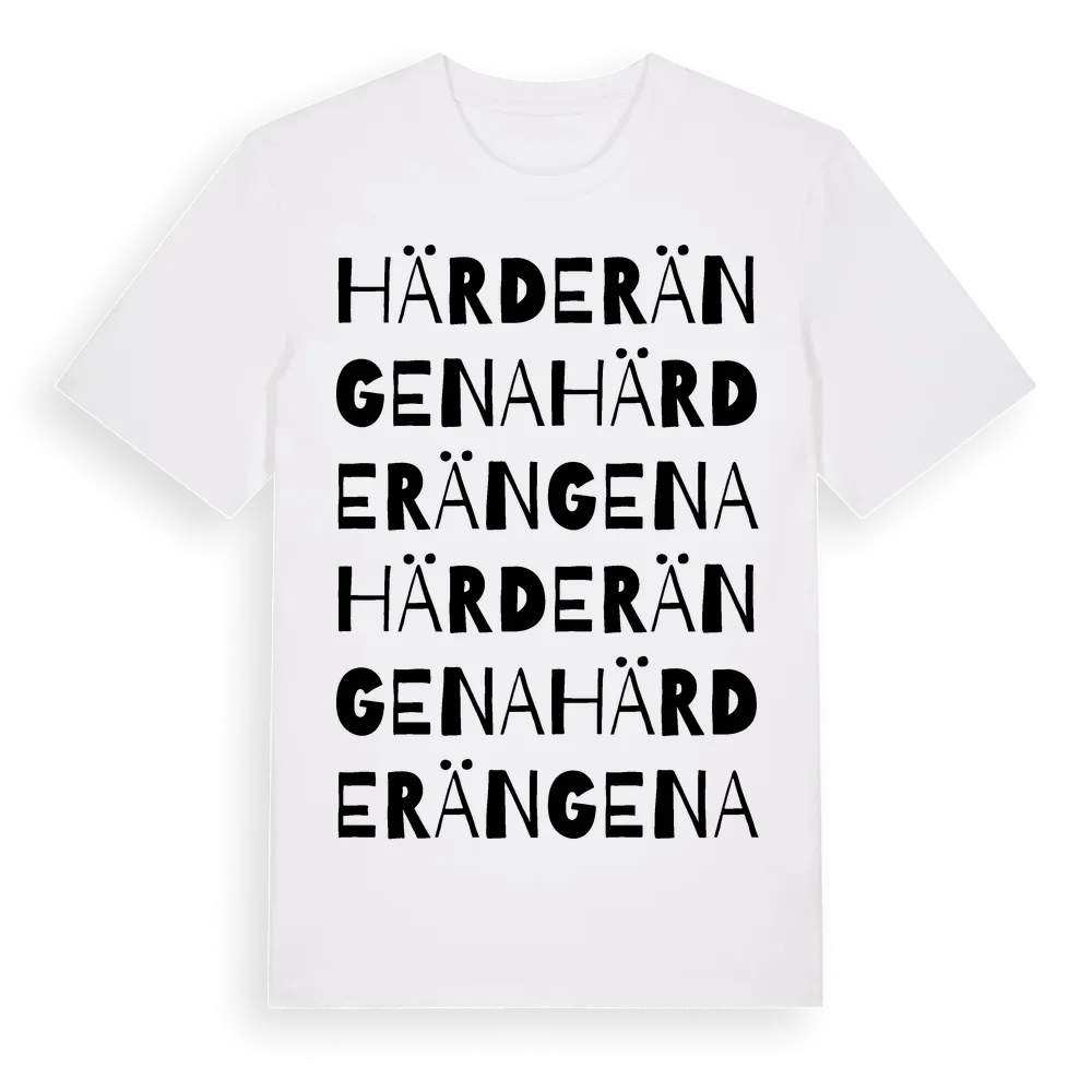 Härderängena ordlek t-shirt är inspirerad av Härderängena i Gävleborgs län, Sverige. Tröjan är designad för dig som har en speciell koppling till platsen – oavsett om du bor här, har rötterna här eller bara älskar Härderängena.