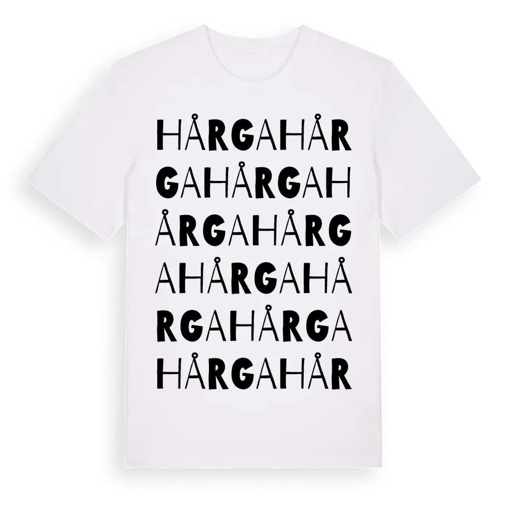 Hårga ordlek t-shirt är inspirerad av byn Hårga i Gävleborgs län, Sverige. Tröjan är designad för dig som har en speciell koppling till platsen – oavsett om du bor här, har rötterna här eller bara älskar Hårga.