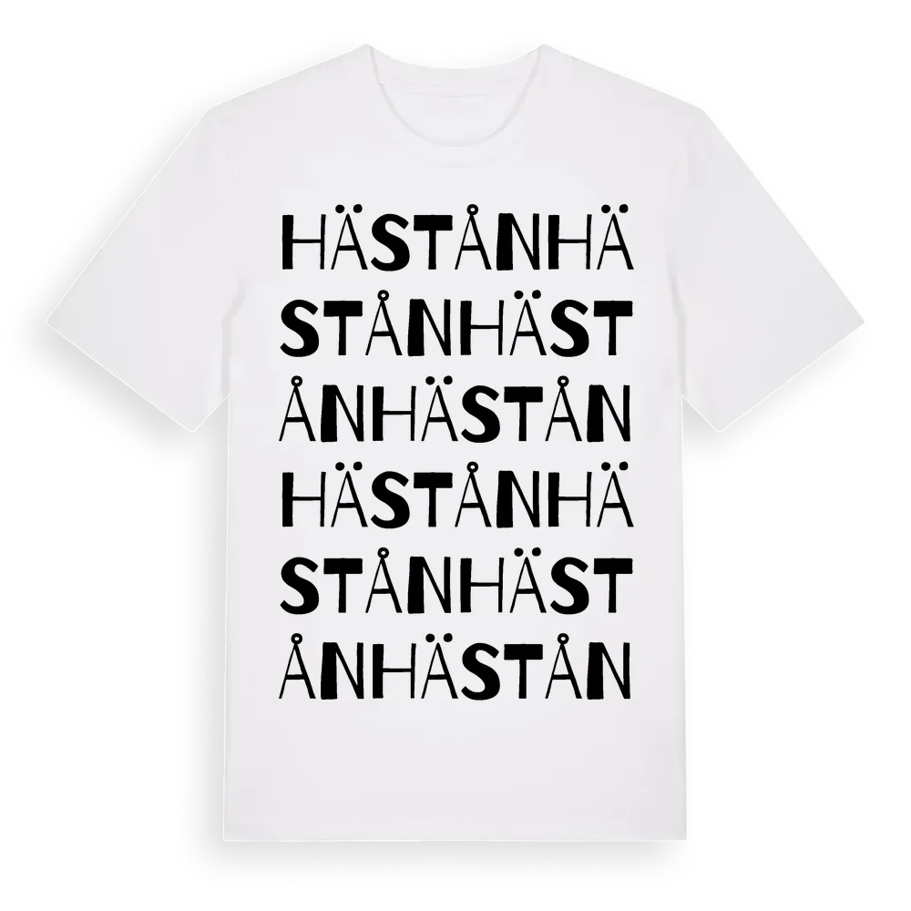 Hästån ordlek t-shirt är inspirerad av Hästån i Gävleborgs län, Sverige. Tröjan är designad för dig som har en speciell koppling till platsen – oavsett om du bor här, har rötterna här eller bara älskar Hästån.