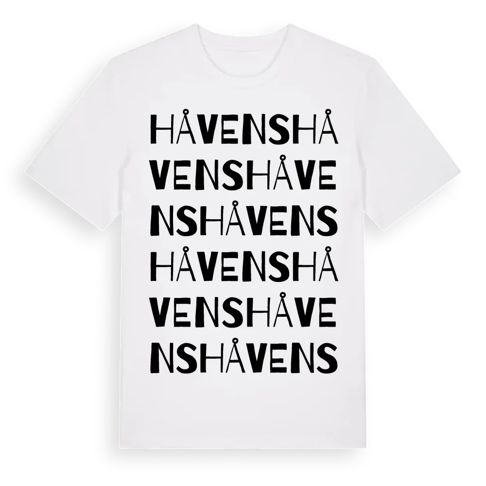 Håvens ordlek t-shirt är inspirerad av Håvens i Gävleborgs län, Sverige. Tröjan är designad för dig som har en speciell koppling till platsen – oavsett om du bor här, har rötterna här eller bara älskar Håvens.