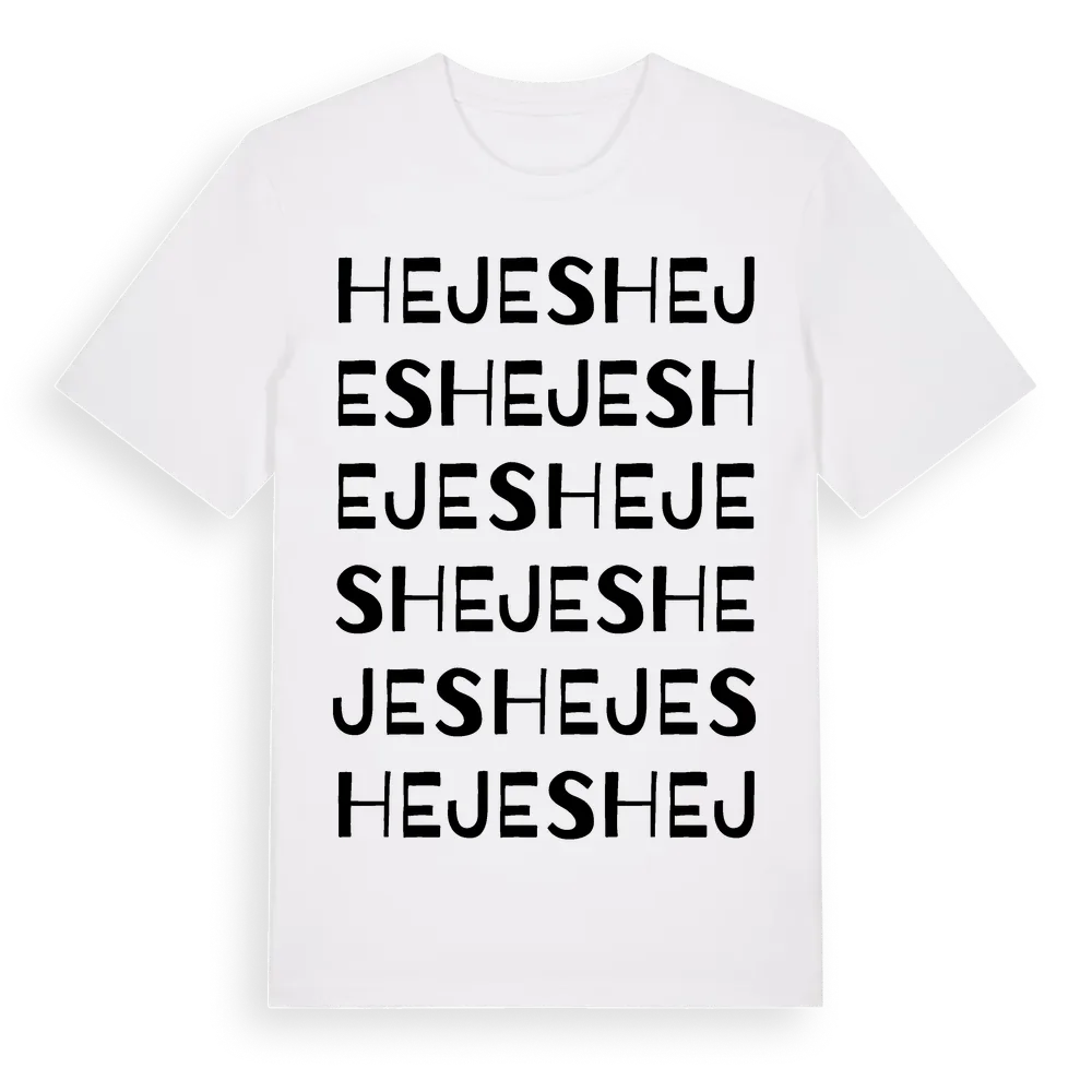Hejes ordlek t-shirt är inspirerad av Hejes i Gävleborgs län, Sverige. Tröjan är designad för dig som har en speciell koppling till platsen – oavsett om du bor här, har rötterna här eller bara älskar Hejes.