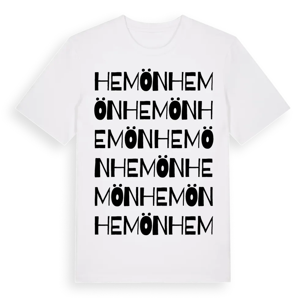 En ordlek byggd på Hemöns namn. Subtilt och klurig – ett motiv som bara de som verkligen känner platsen fullt ut förstår. Premium bomull, unisex – från Hemön i Gävleborgs län.