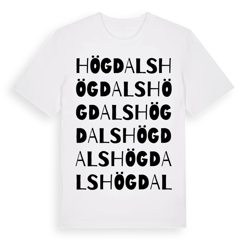 Högdals ordlek t-shirt är inspirerad av Högdals i Gävleborgs län, Sverige. Tröjan är designad för dig som har en speciell koppling till platsen – oavsett om du bor här, har rötterna här eller bara älskar Högdals.