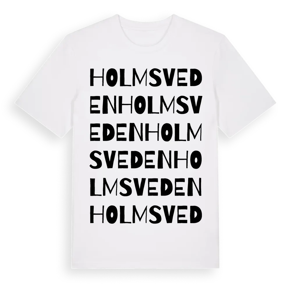 Holmsveden ordlek t-shirt är inspirerad av byn Holmsveden i Gävleborgs län, Sverige. Tröjan är designad för dig som har en speciell koppling till platsen – oavsett om du bor här, har rötterna här eller bara älskar Holmsveden.