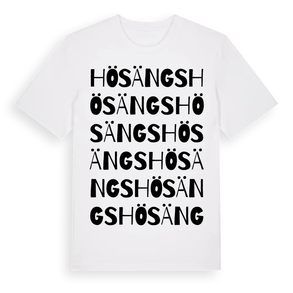 Hösängs ordlek t-shirt är inspirerad av Hösängs i Gävleborgs län, Sverige. Tröjan är designad för dig som har en speciell koppling till platsen – oavsett om du bor här, har rötterna här eller bara älskar Hösängs.