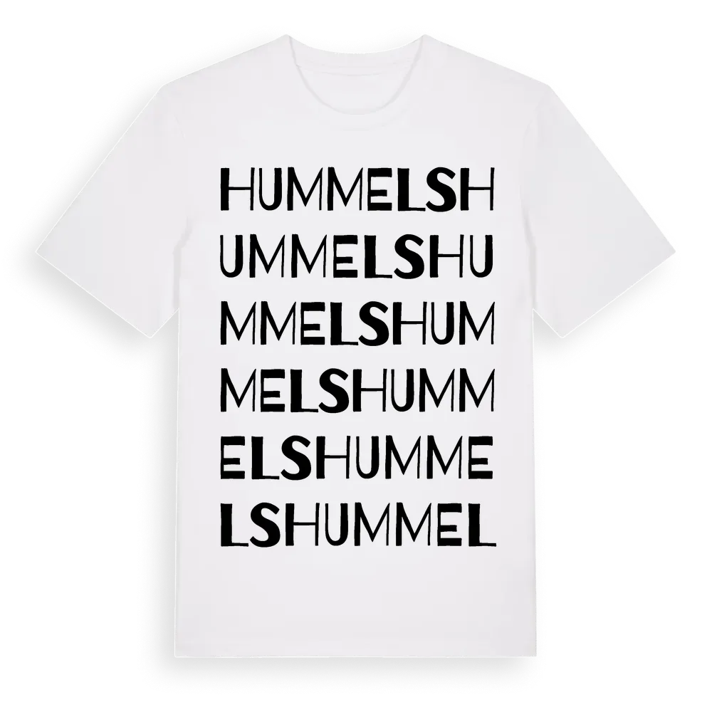 Hummels ordlek t-shirt är inspirerad av Hummels i Gävleborgs län, Sverige. Tröjan är designad för dig som har en speciell koppling till platsen – oavsett om du bor här, har rötterna här eller bara älskar Hummels.