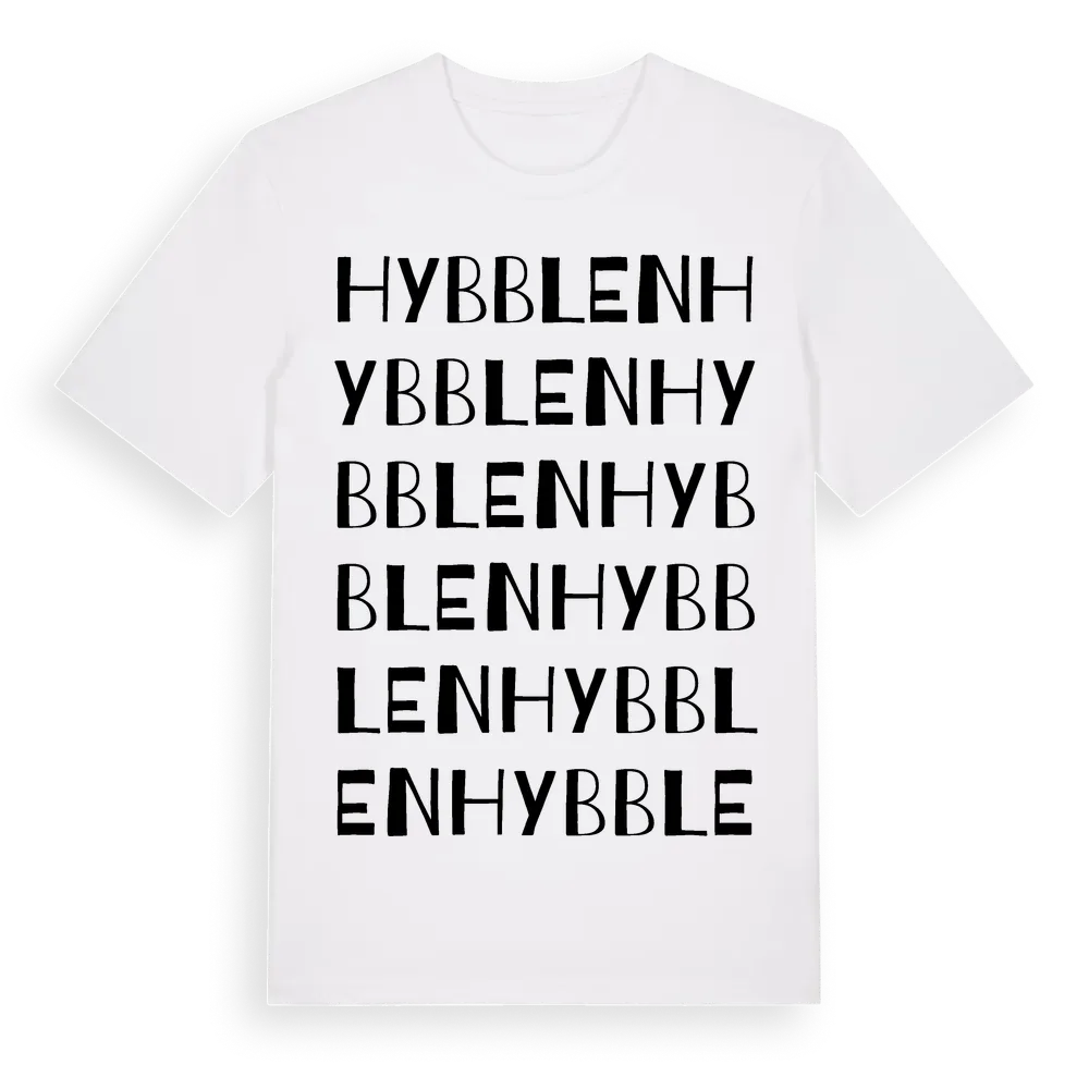 Hybblen ordlek t-shirt är inspirerad av Hybblen i Gävleborgs län, Sverige. Tröjan är designad för dig som har en speciell koppling till platsen – oavsett om du bor här, har rötterna här eller bara älskar Hybblen.