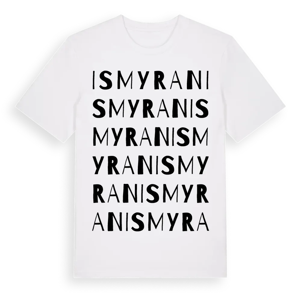 Ismyran ordlek t-shirt är inspirerad av Ismyran i Gävleborgs län, Sverige. Tröjan är designad för dig som har en speciell koppling till platsen – oavsett om du bor här, har rötterna här eller bara älskar Ismyran.