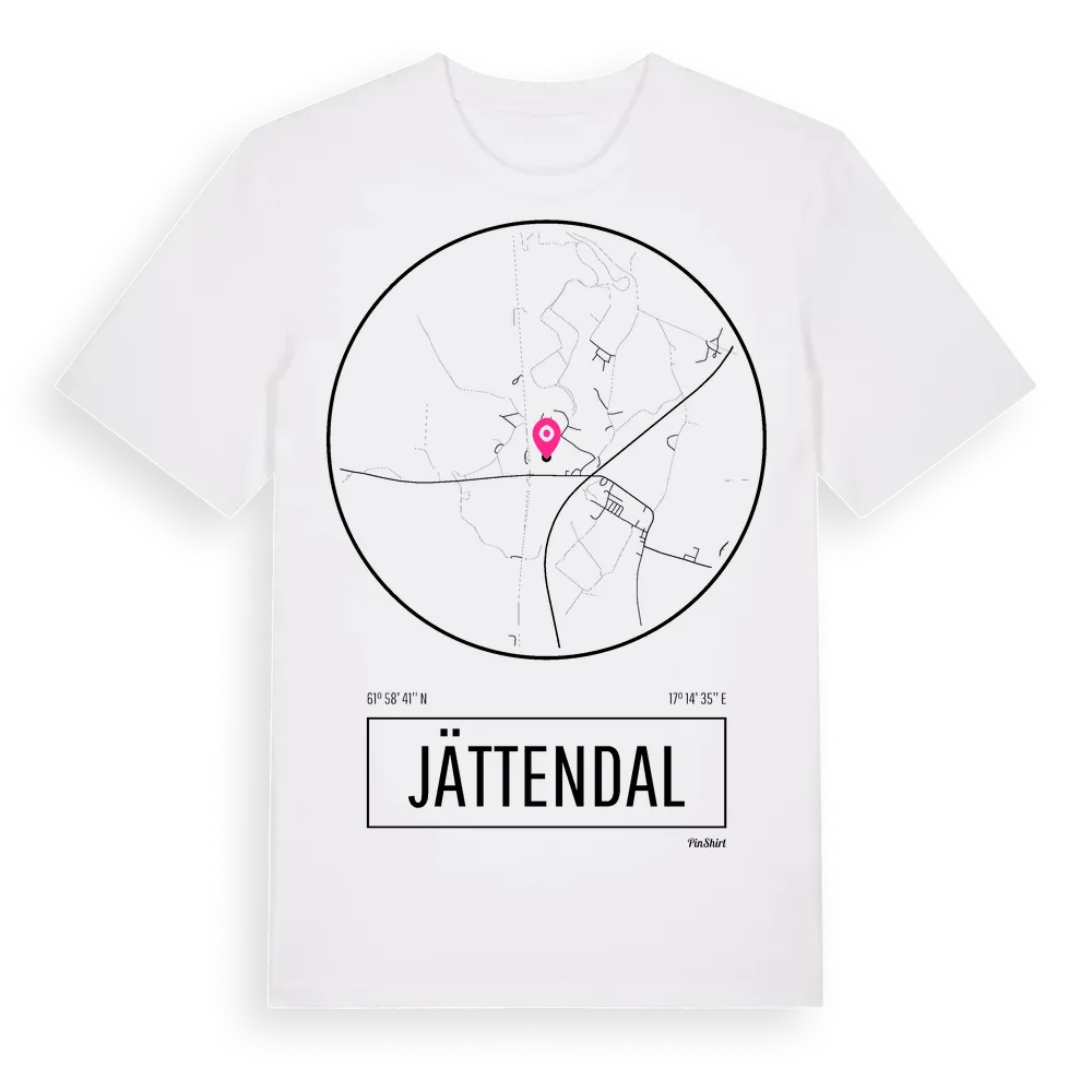 Jättendal t-shirt är inspirerad av byn Jättendal i Gävleborgs län, Sverige. Tröjan är designad för dig som har en speciell koppling till platsen – oavsett om du bor här, har rötterna här eller bara älskar Jättendal.