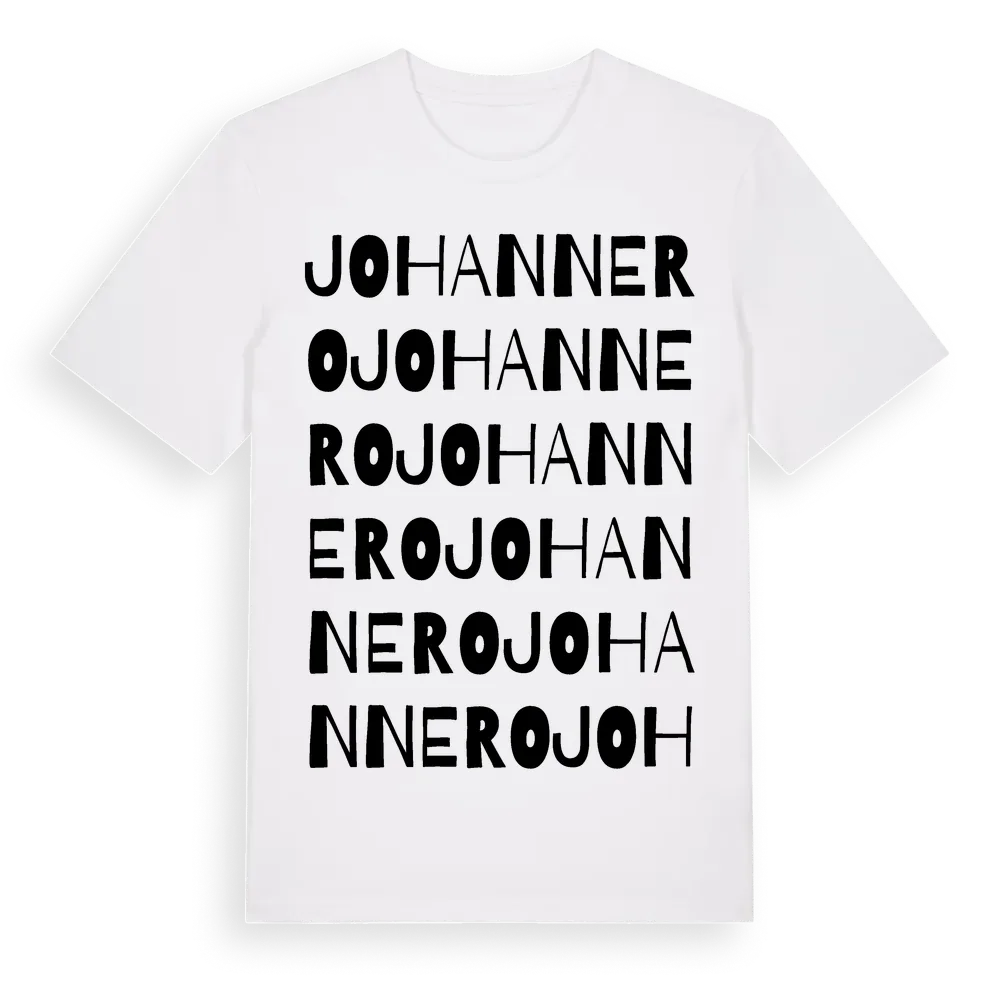 Johannero ordlek t-shirt är inspirerad av Johannero i Gävleborgs län, Sverige. Tröjan är designad för dig som har en speciell koppling till platsen – oavsett om du bor här, har rötterna här eller bara älskar Johannero.