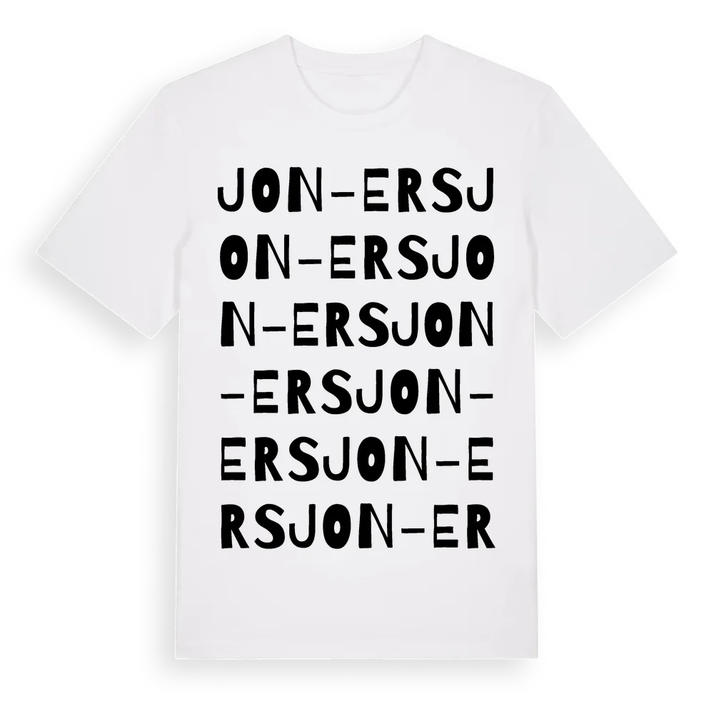 Jon-Ers ordlek t-shirt är inspirerad av Jon-Ers i Gävleborgs län, Sverige. Tröjan är designad för dig som har en speciell koppling till platsen – oavsett om du bor här, har rötterna här eller bara älskar Jon-Ers.