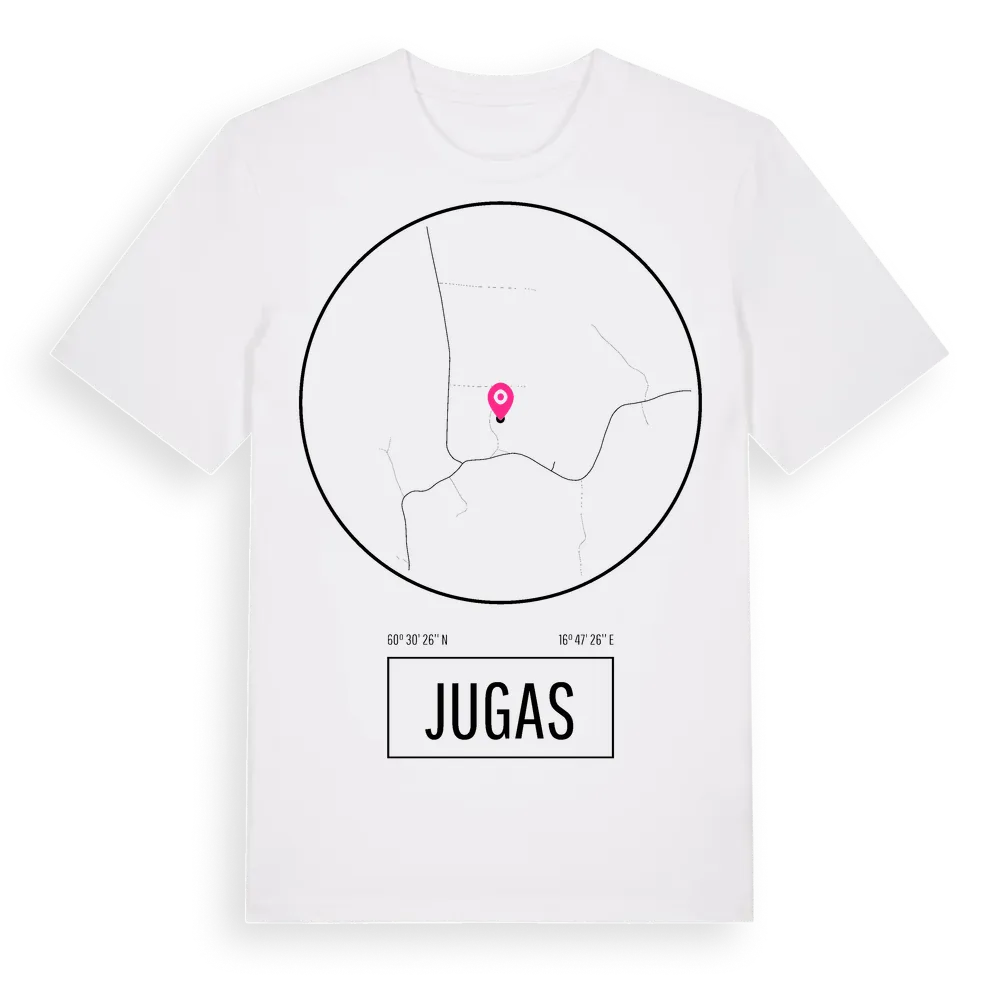 Jugas t-shirt är inspirerad av stadsdelen Jugas i Gävleborgs län, Sverige. Tröjan är designad för dig som har en speciell koppling till platsen – oavsett om du bor här, har rötterna här eller bara älskar Jugas.