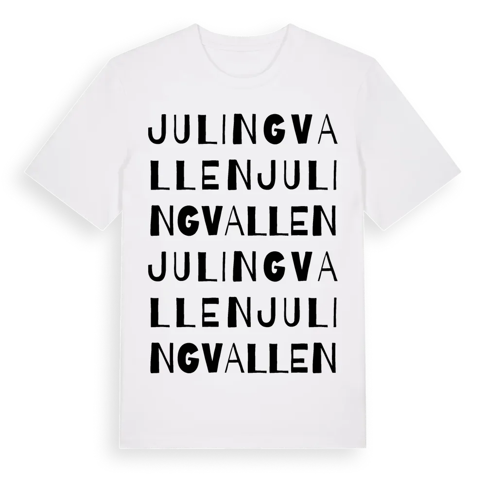 Julingvallen ordlek t-shirt är inspirerad av byn Julingvallen i Gävleborgs län, Sverige. Tröjan är designad för dig som har en speciell koppling till platsen – oavsett om du bor här, har rötterna här eller bara älskar Julingvallen.