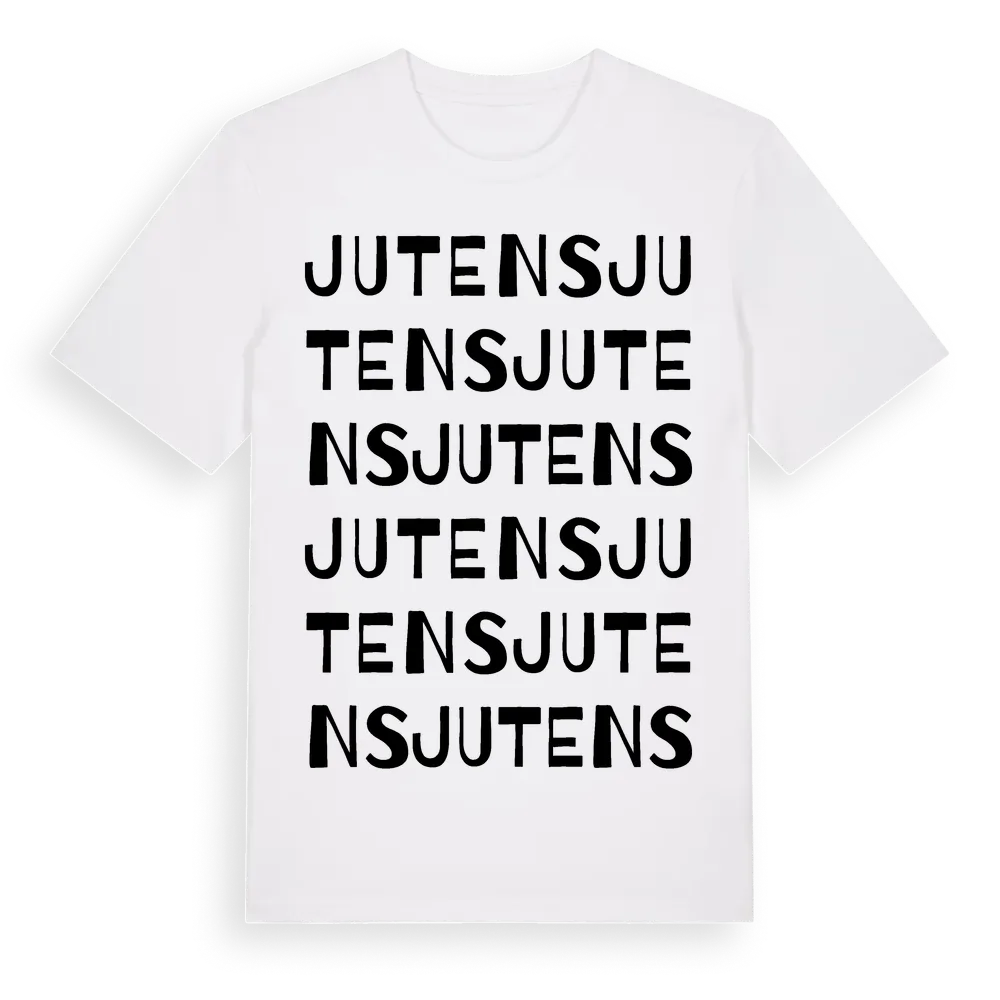 En ordlek byggd på Jutenss namn. Subtilt och klurig – ett motiv som bara de som verkligen känner platsen fullt ut förstår. Premium bomull, unisex – från Jutens i Gävleborgs län.