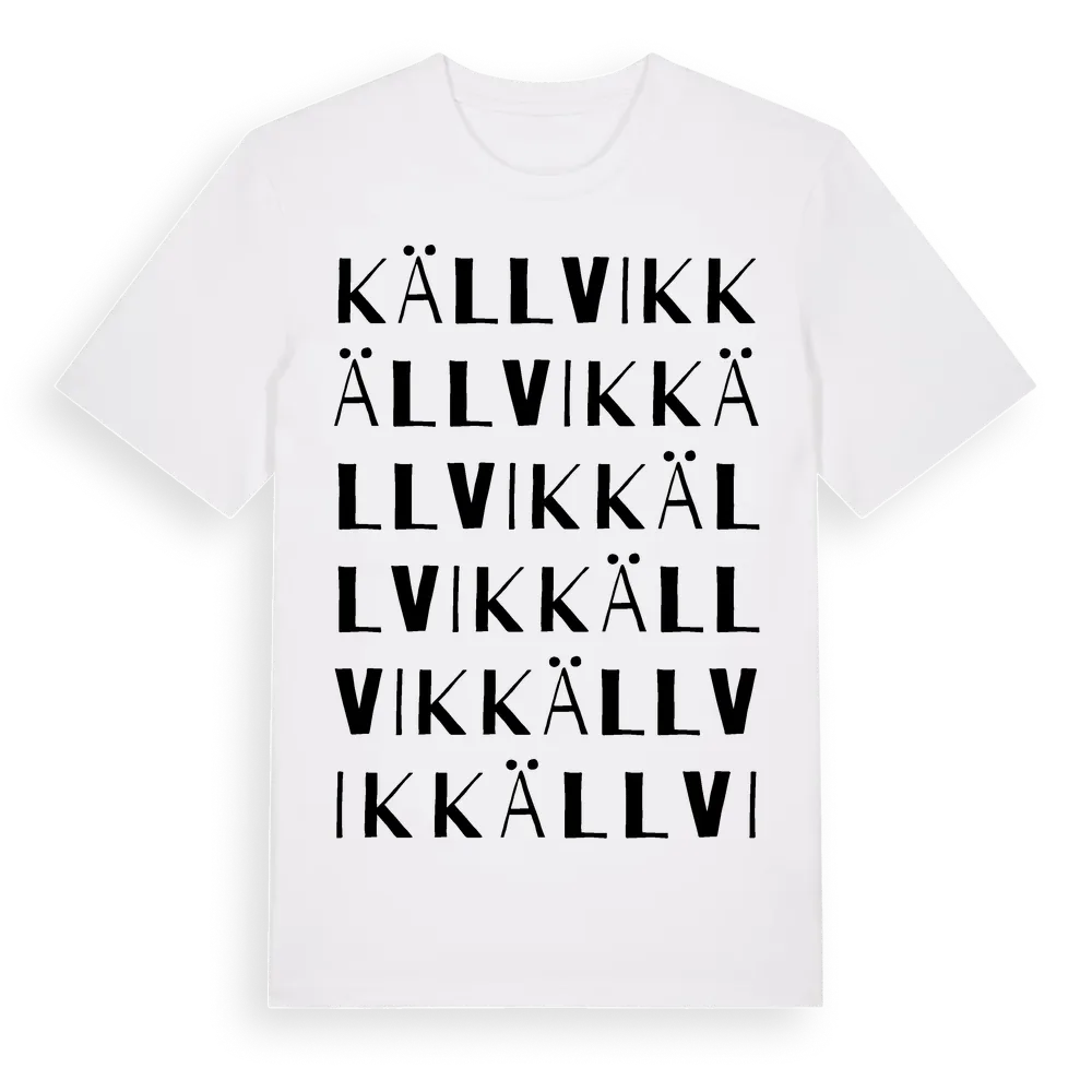 Källvik ordlek t-shirt är inspirerad av byn Källvik i Gävleborgs län, Sverige. Tröjan är designad för dig som har en speciell koppling till platsen – oavsett om du bor här, har rötterna här eller bara älskar Källvik.