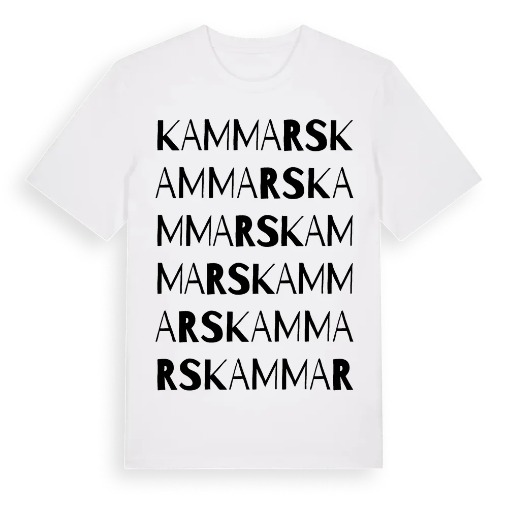 En ordlek byggd på Kammarss namn. Subtilt och klurig – ett motiv som bara de som verkligen känner platsen fullt ut förstår. Premium bomull, unisex – från Kammars i Gävleborgs län.
