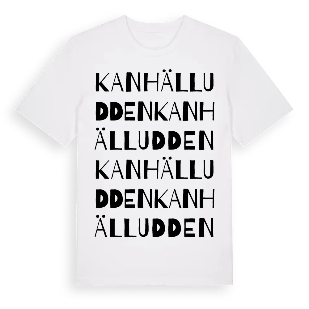 En ordlek byggd på Kanhälluddens namn. Subtilt och klurig – ett motiv som bara de som verkligen känner platsen fullt ut förstår. Premium bomull, unisex – från Kanhälludden i Gävleborgs län.