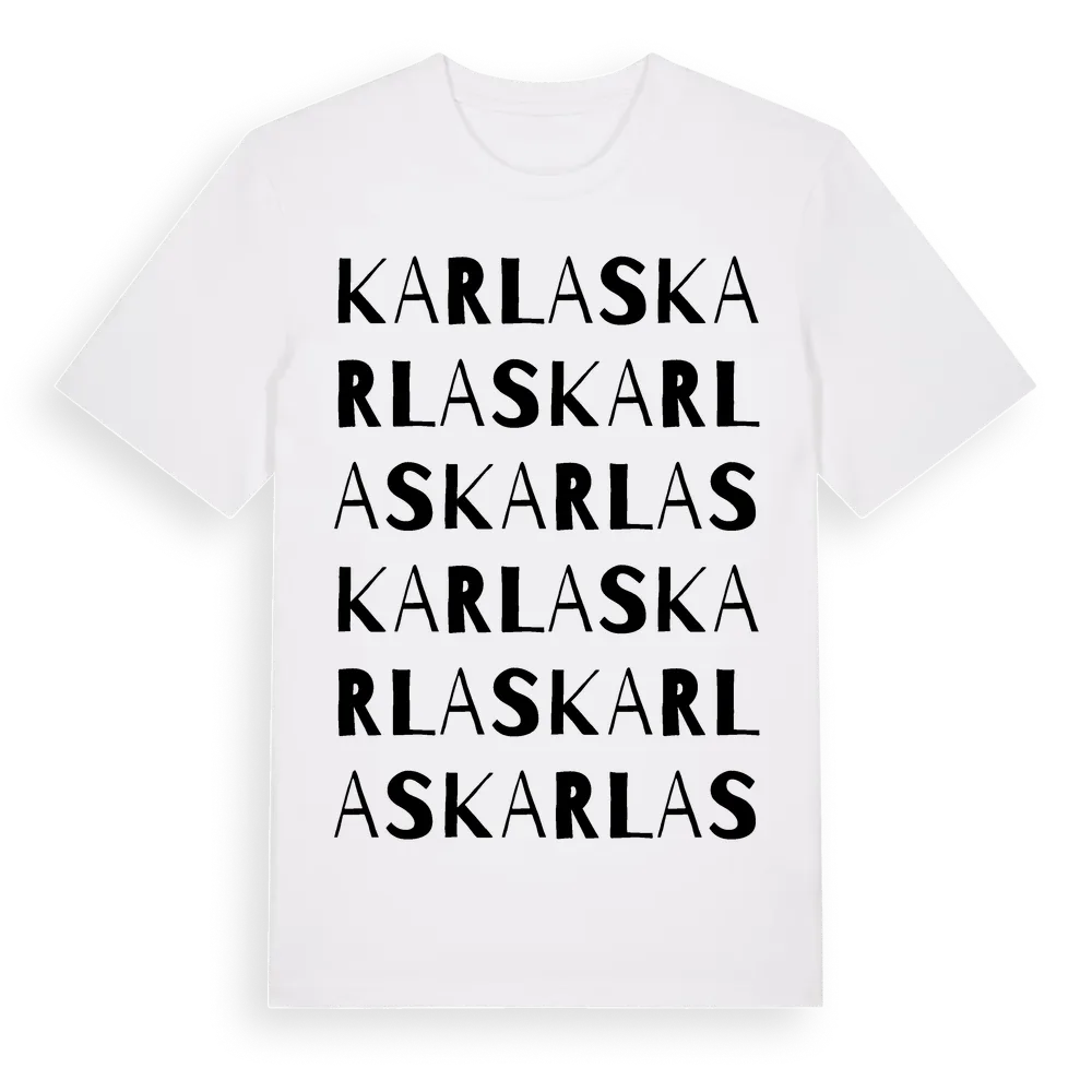 Karlas ordlek t-shirt är inspirerad av Karlas i Gävleborgs län, Sverige. Tröjan är designad för dig som har en speciell koppling till platsen – oavsett om du bor här, har rötterna här eller bara älskar Karlas.