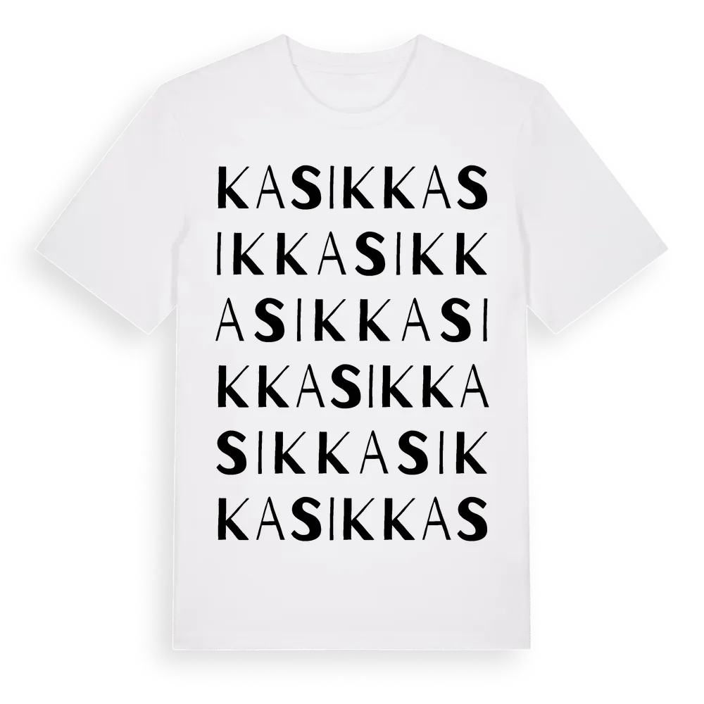Kasik ordlek t-shirt är inspirerad av Kasik i Gävleborgs län, Sverige. Tröjan är designad för dig som har en speciell koppling till platsen – oavsett om du bor här, har rötterna här eller bara älskar Kasik.