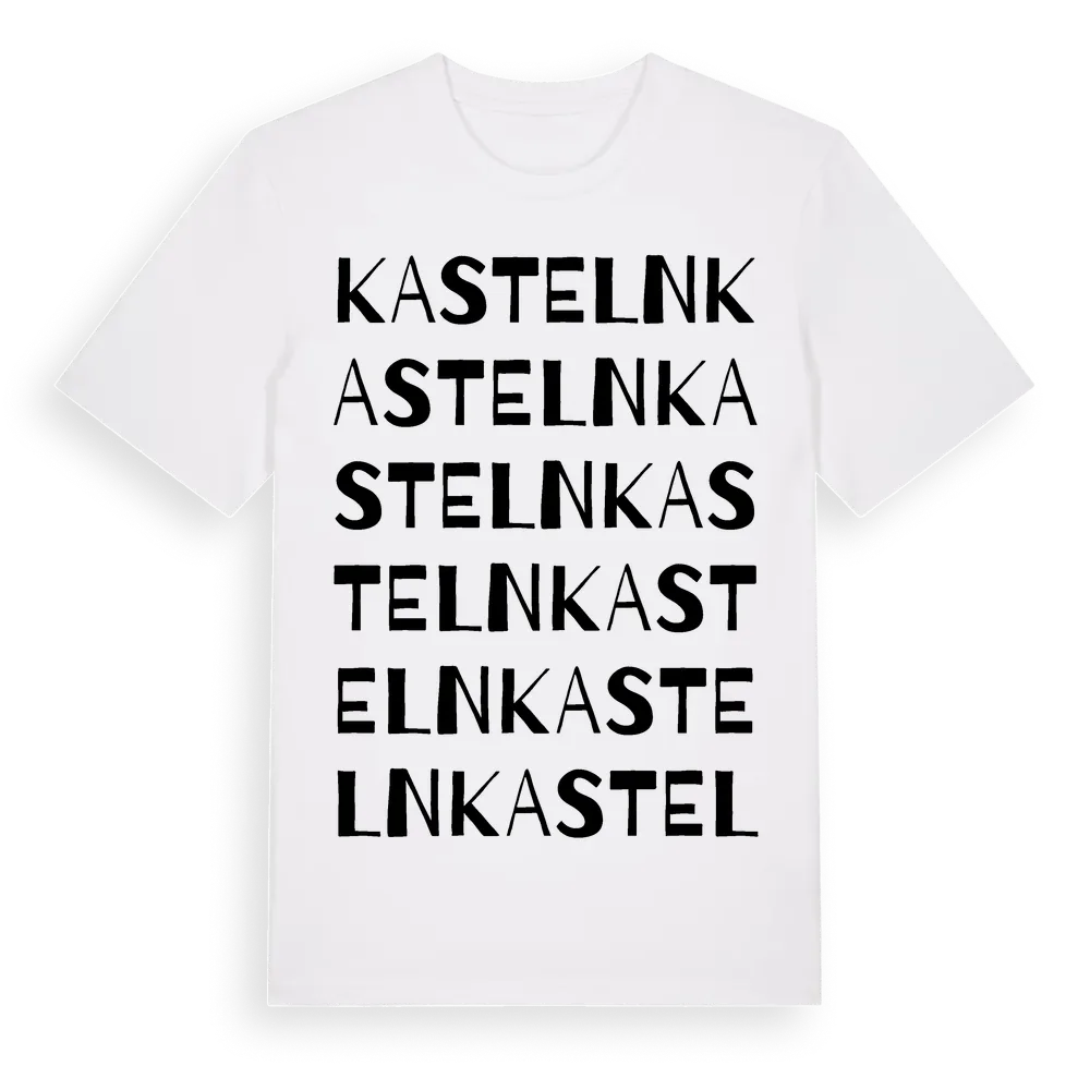 Kasteln ordlek t-shirt är inspirerad av Kasteln i Gävleborgs län, Sverige. Tröjan är designad för dig som har en speciell koppling till platsen – oavsett om du bor här, har rötterna här eller bara älskar Kasteln.