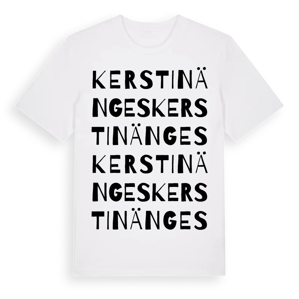 Kerstinänges ordlek t-shirt är inspirerad av Kerstinänges i Gävleborgs län, Sverige. Tröjan är designad för dig som har en speciell koppling till platsen – oavsett om du bor här, har rötterna här eller bara älskar Kerstinänges.