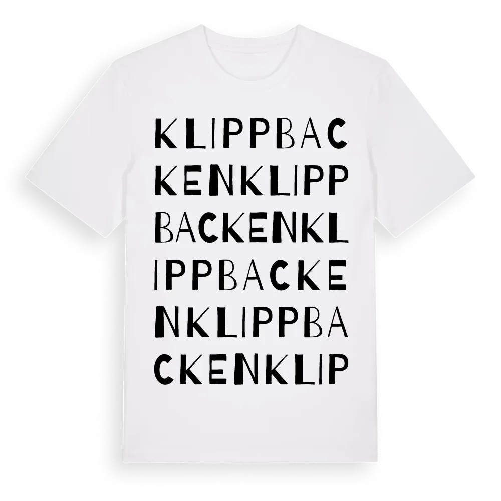 En ordlek byggd på Klippbackens namn. Subtilt och klurig – ett motiv som bara de som verkligen känner platsen fullt ut förstår. Premium bomull, unisex – från Klippbacken i Gävleborgs län.